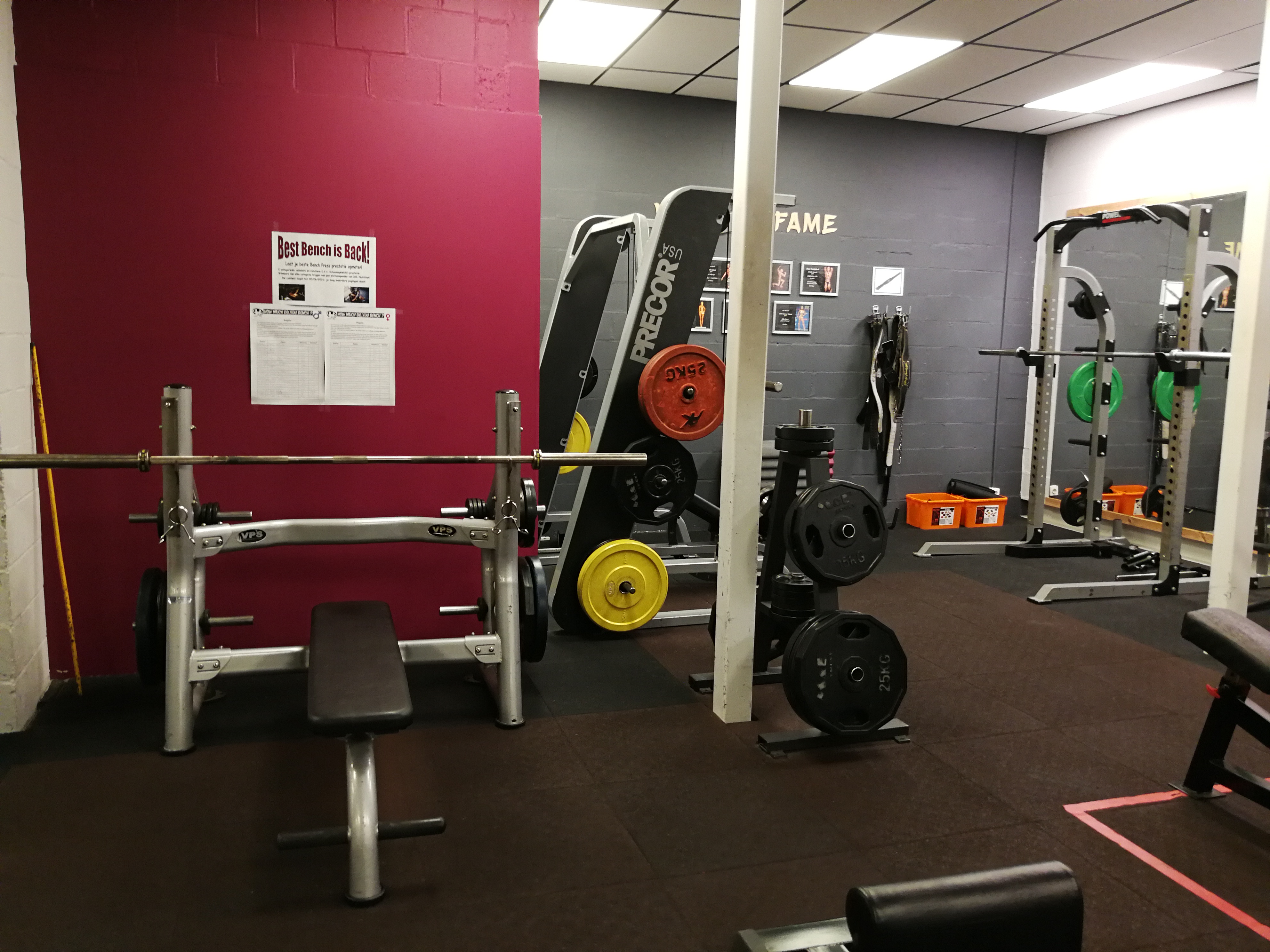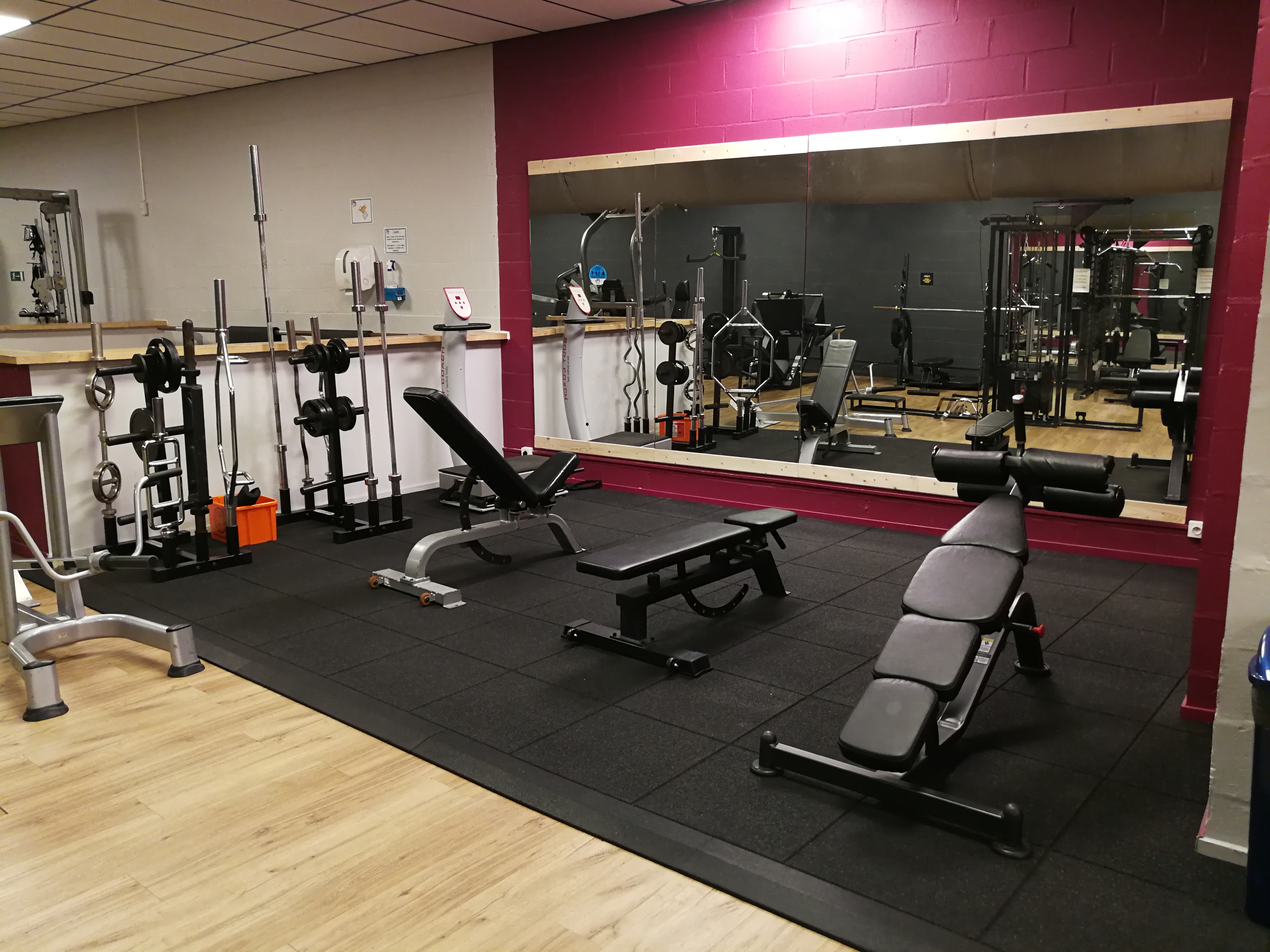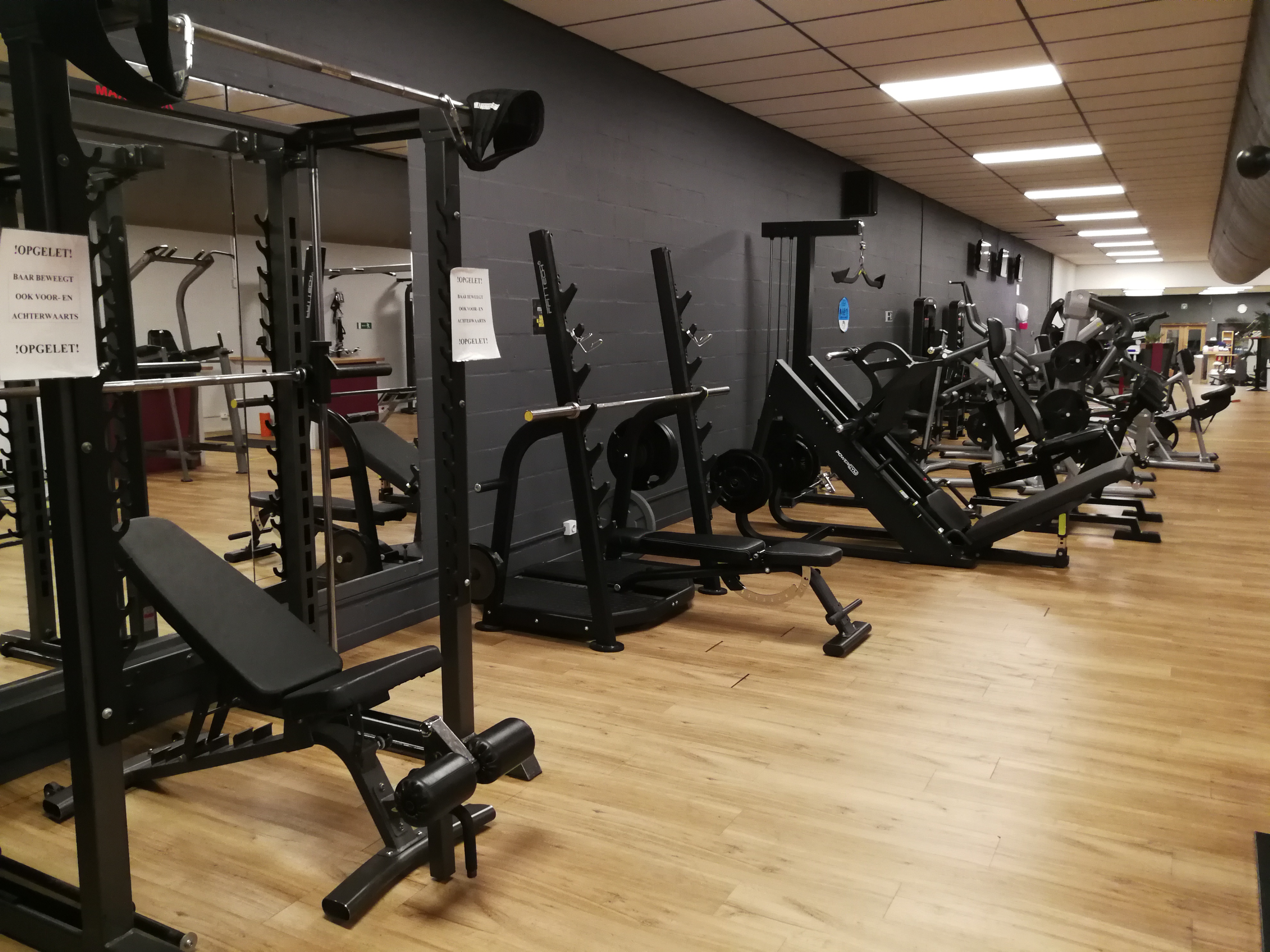 Daarnaast zijn er een tiental banken, halters tot 50 kg en verschillende olympische baren met in totaal 1223 kg aan schijven.
